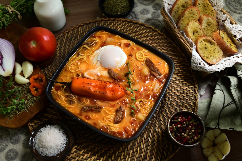 Nuestra Sopa criolla es un homenaje a la tradición de la cocina peruana. La receta al estilo de Josefina, combina la riqueza culinaria de nuestra herencia colonial. El corazón de la sopa criolla es el ají panca, que con su sabor y color distintivos, infunde el caldo con una autenticidad que se siente en cada bocado. La carne de res, cortada en pequeños cubos se cocina a la perfección, proporcionando una textura rica y jugosa. La sopa se enriquece con la adición de ingredientes simples pero sabrosos. Los fideos, la cebolla y el tomate se mezclan en el caldo, mientras que el huevo escalfado, añade un toque de lujo y un extra de proteína. Finalmente, un toque de orégano da el acabado final, fusionando todos los sabores juntos. La sopa criolla de Josefina es un plato reconfortante para invierno o verano, una receta que calienta el cuerpo y el alma, y un testamento a la rica historia culinaria del Perú.